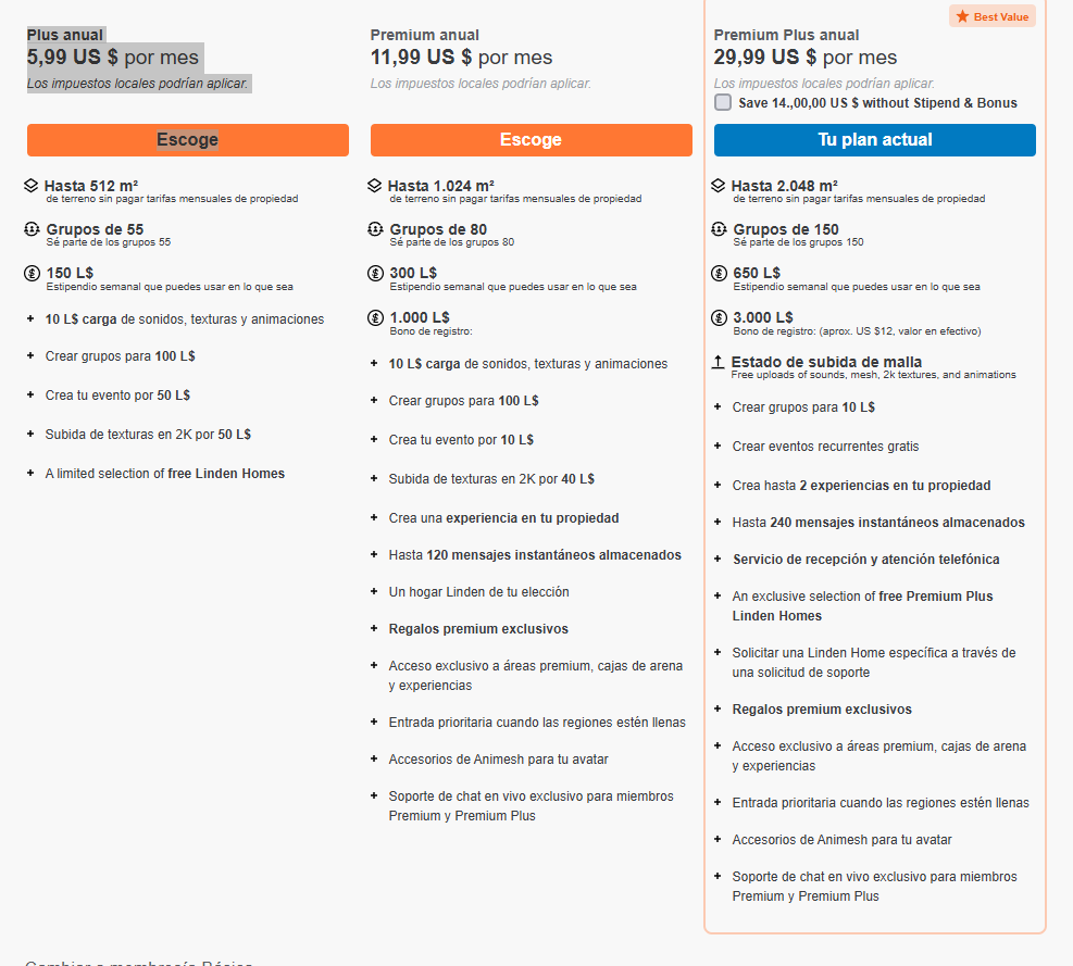 Lo mejor de ello, es que siguen respetando cada uno de los beneficios que se tenía con la membresía PREMIUM PLUS, quitando la parte de los lindens del estipendio.